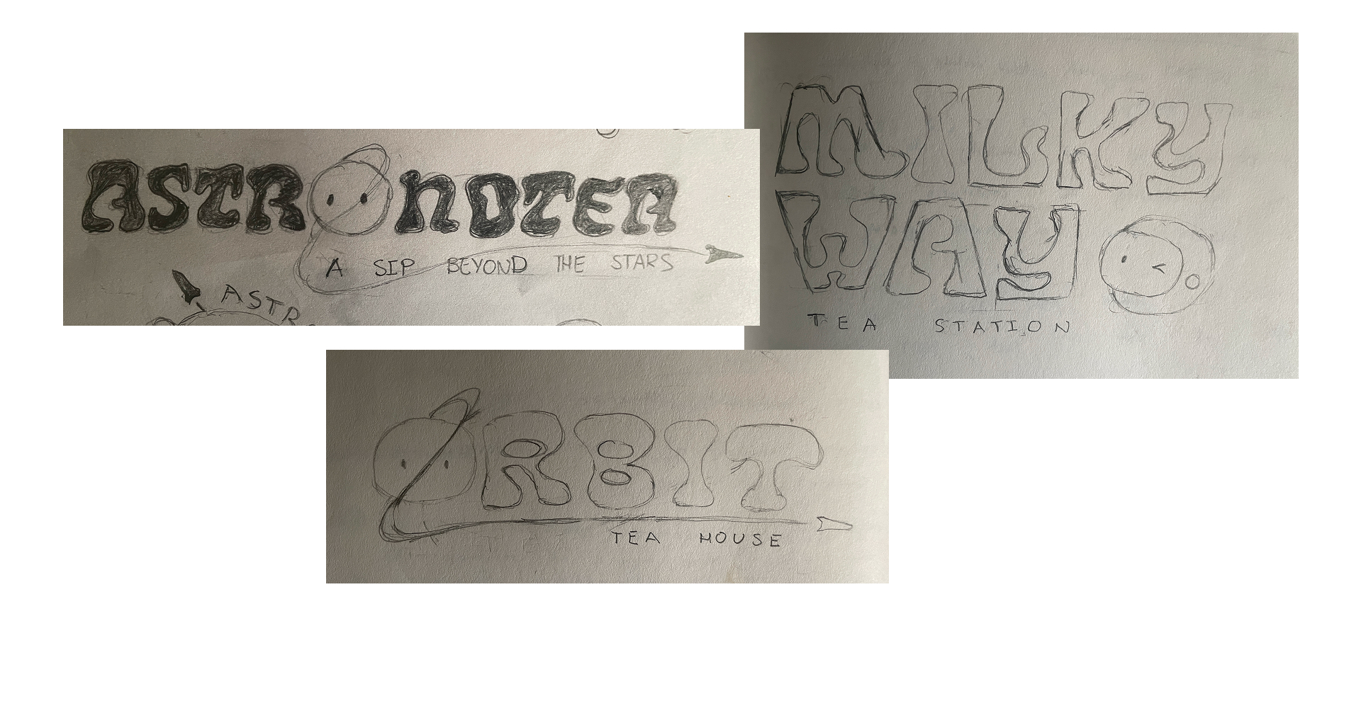 I explored several directions before finalizing a name for the brand. My first concept, Astronotea—a play on "astronomy" and "tea"—was a fun pun, but the more I said it out loud, the more I felt it lacked readability. I also considered Orbit Tea House, which felt more straightforward. Ultimately, I chose Milky Way Tea Station.