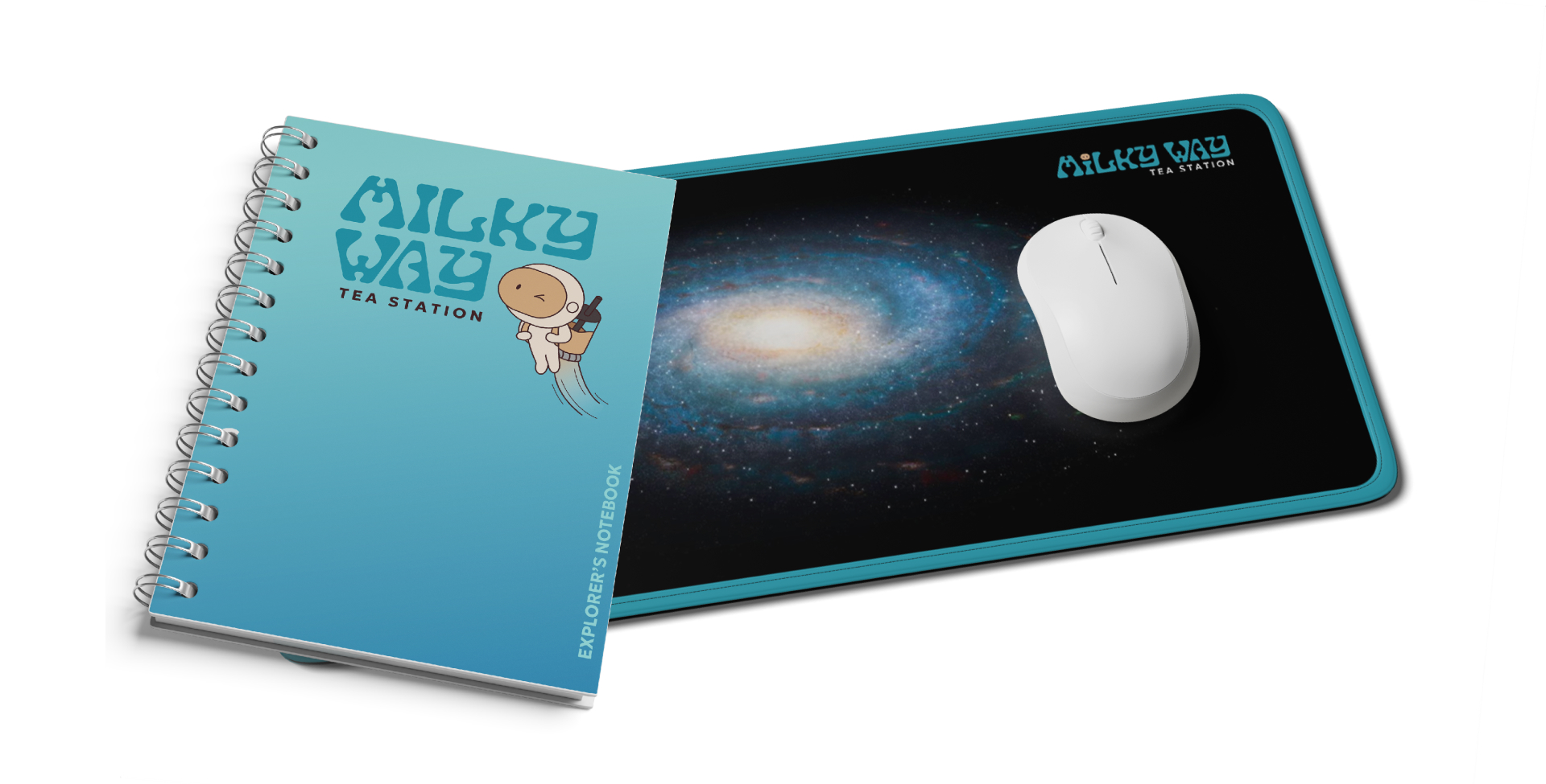 For any customers who use Milky Way Tea Station as a cozy spot to study or get work done, these branded notebooks and mousepads offer the perfect functional keepsake.